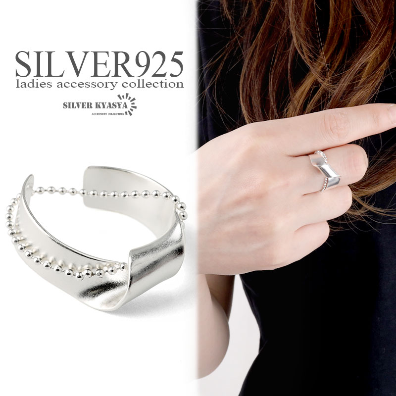 シルバー925 ボールチェーン ツイストリング 指輪925 シルバー 銀色 レディース フリーサイズ 金属アレルギー
