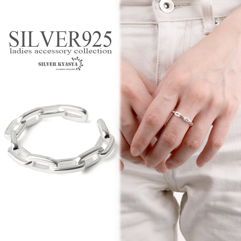 シルバー925 あずきチェーン チェーンリング 細身リング 指輪925 シルバー 銀色 リング 金属アレルギー
