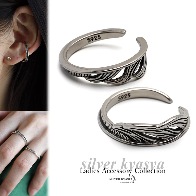 イヤーカフリング 2WAY オープンリング フェザーリング 羽根 イヤーカフ リング 指輪 シンプル かわいい シルバー925