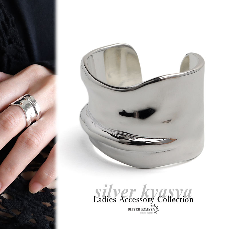 存在感たっぷりのシルバーワイドリング。メタリックなボディに皺の寄ったラフなデザインが魅力のアイテム。
