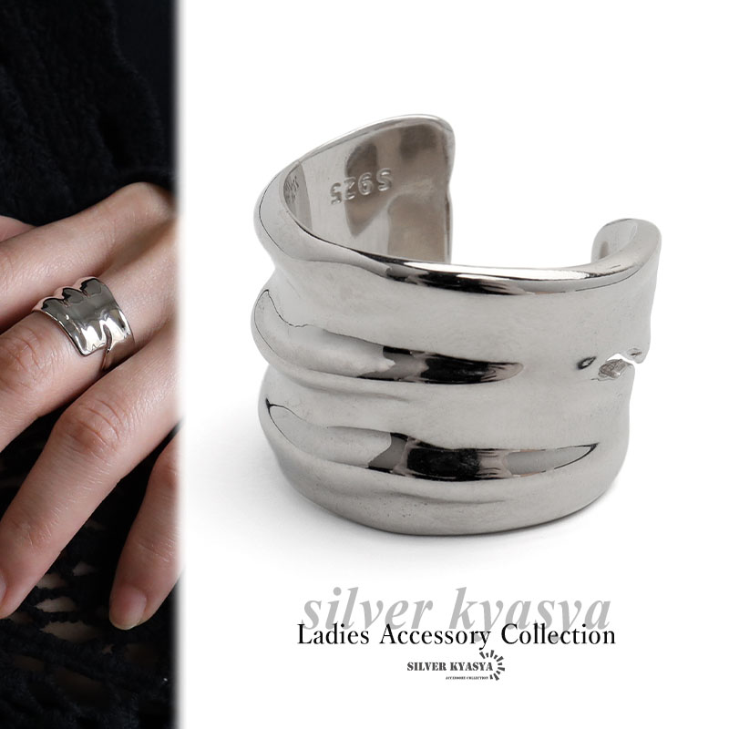 シルバー925 太めリング 太幅 指輪 ワイドリング ライン 布の皺 シワ 大きい リング シルバーリング 金属アレルギーフリー
