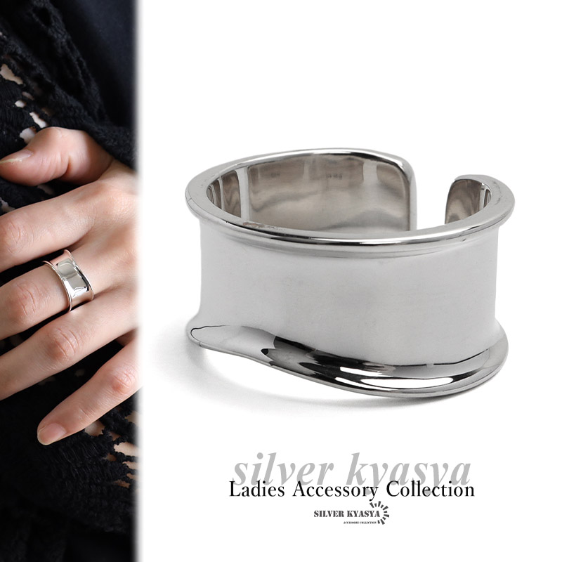 シルバー925 太めリング シンプルリング 滑らか スクロールリング 波 リング 大きい シルバーリング 金属アレルギーフリー