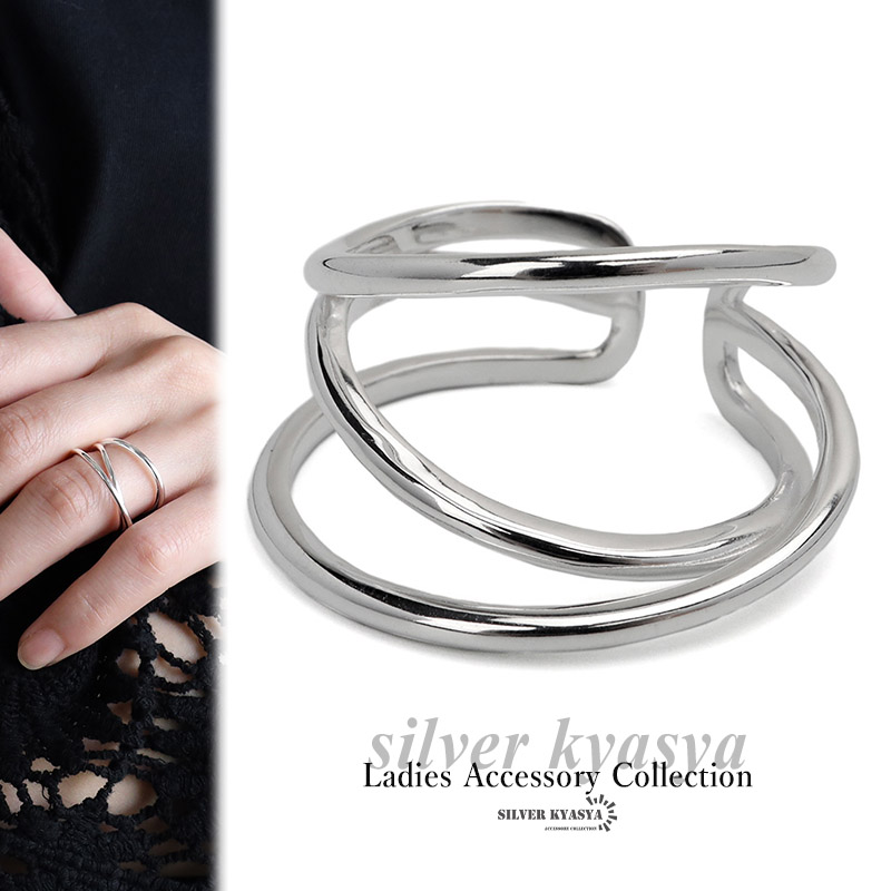 ざっくりとした3連風のシルバーリング。細いラインがゆったりと交差し、指を細く長く見せる嬉しいアイテム。
