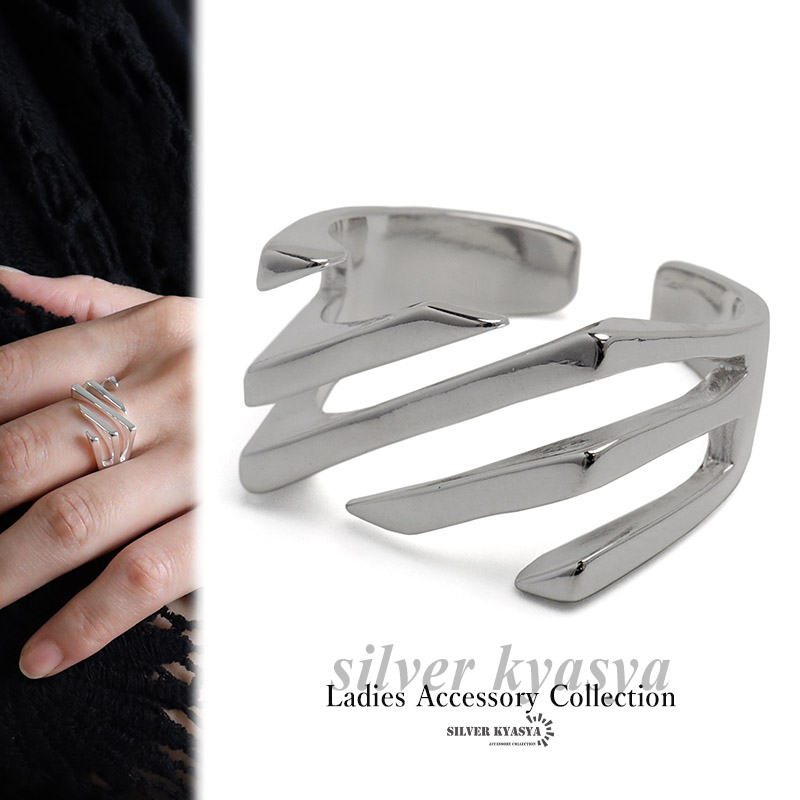 斜線で構成した幾何学的なデザインが魅力のリング。個性的でモードな雰囲気を演出し、手元に注目を集めるアイテムです。