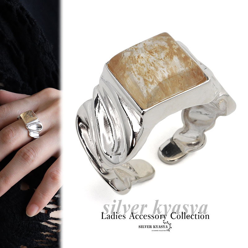 不規則 シワ 天然石リング シルバー925 太め指輪 S925 シトリンリング 黄水晶 リング 誕生石 金属アレルギーフリー