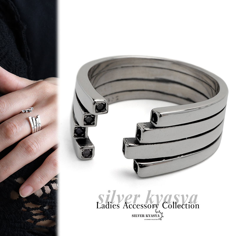 シルバー925 多重ライン リング カラフルストーン 造形美 幾何学 存在感リング シルバーリング 金属アレルギーフリー