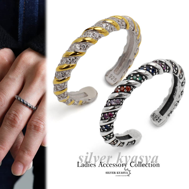 シルバー925 ツイスト フルエタニティリング ねじり ロープ 指輪 レディース キラキラ カラフル シルバーリング 金属アレルギーフリー