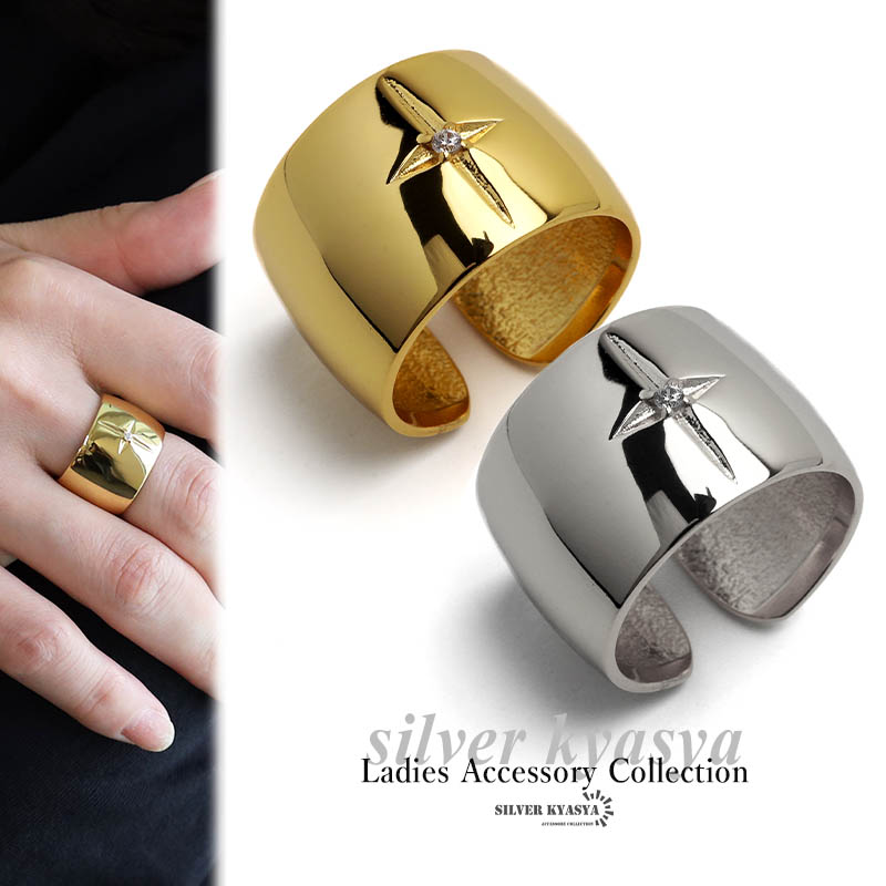 丸みのあるフォルムが可愛い甲丸タイプのワイドリング。星型をあしらい、中央に小粒のジルコニアをセットしたワンポイントが魅力のアイテム。