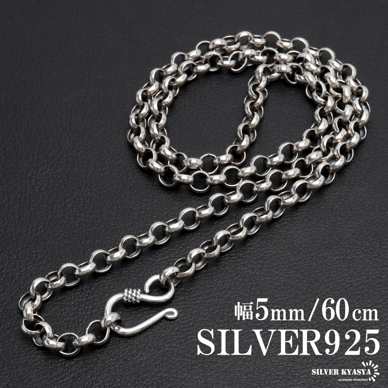 シルバー925 ロールチェーン ネックレス 幅5mm 60cm ネックレスチェーン 太め メンズ 男性 金属アレルギー対応