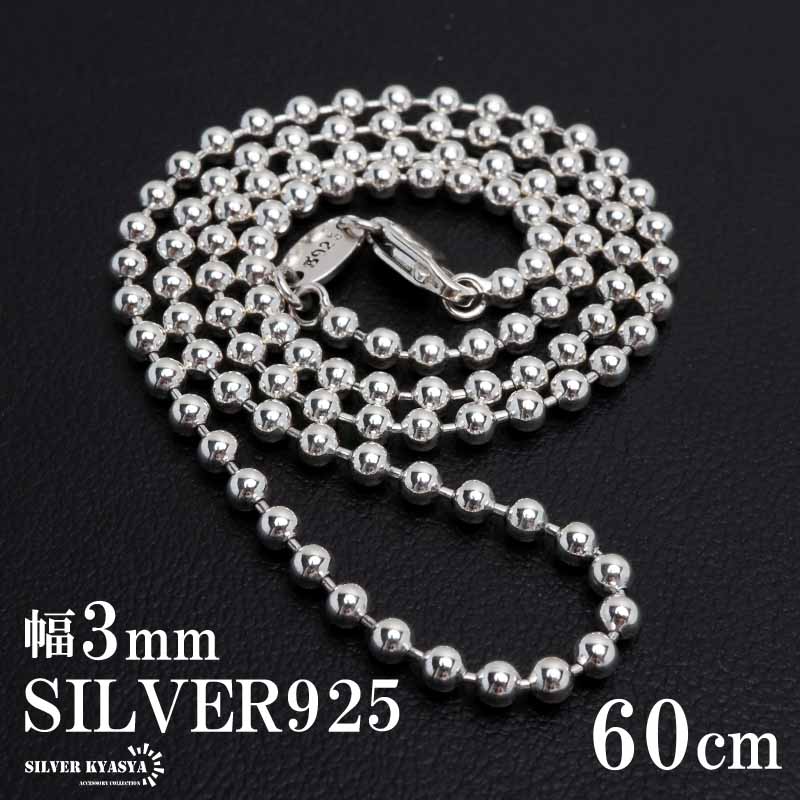 シルバー925 ボールチェーン ネックレス 幅3mm 60cm ネックレスチェーン メンズ 男性 金属アレルギー対応