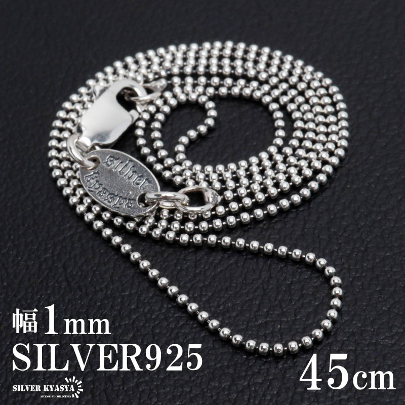 シルバー925 ボールチェーン ネックレス 幅1mm 45cm ネックレスチェーン 極細 メンズ 男性 金属アレルギー対応
