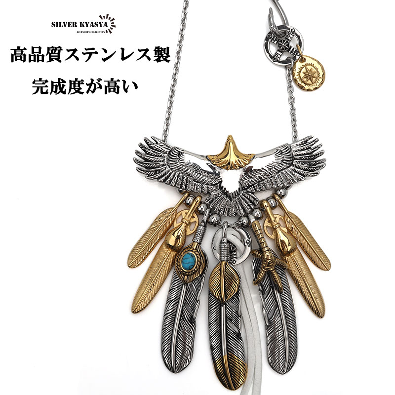 316L フェザーネックレス メンズ シルバー 太陽 金爪 フェザーネックレス イーグルネックレス カスタム 専用BOX付属