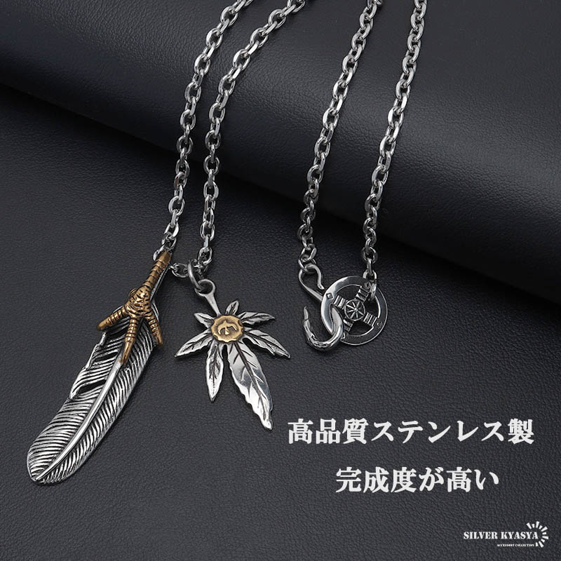 ステンレス フェザーネックレス インディアンジュエリー カスタムネックレス シルバー ゴールド イーグル 太陽 金爪 オリジナル フック