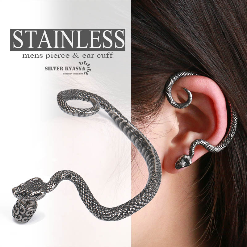ヘビピアス ステンレス 蛇 スネーク 動物 アニマル 爬虫類 スタッドピアス ラージサイズ 大きめ 面白 片耳用 アレルギー対応