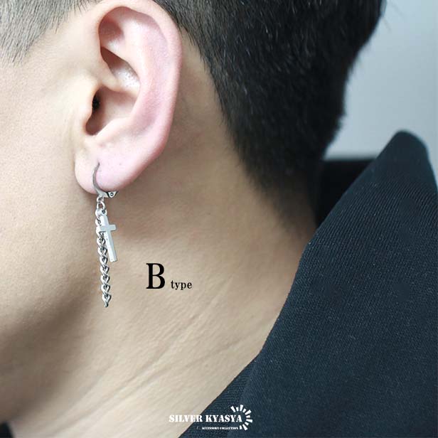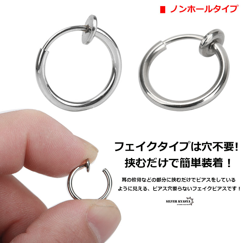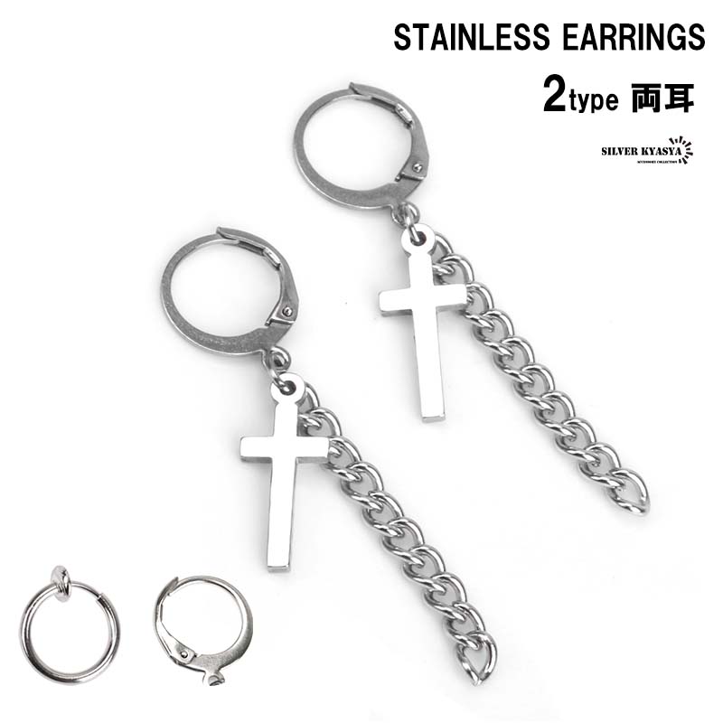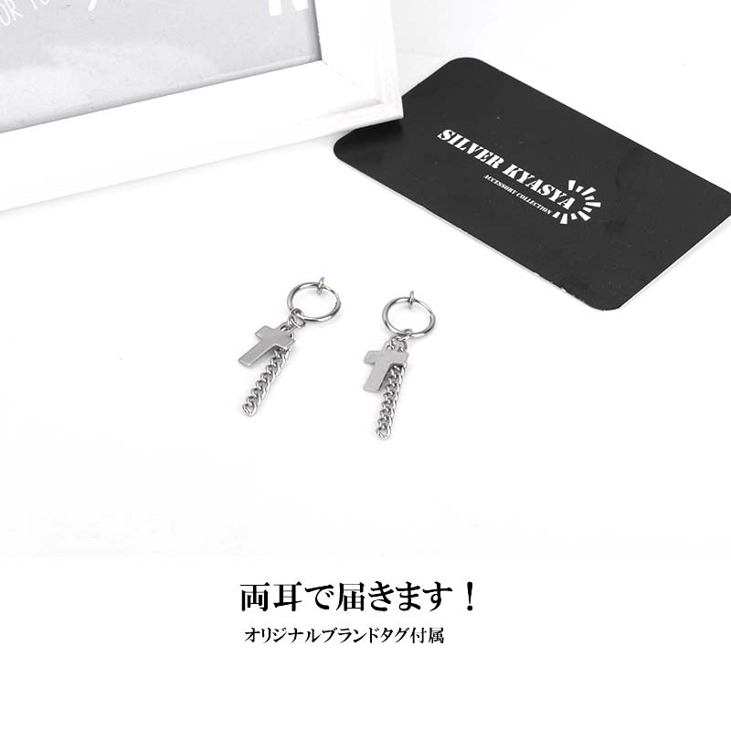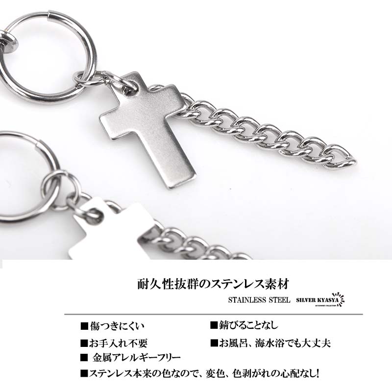 両耳 穴不要 フェイクピアス 2type ステンレスピアス リング フープピアス シルバー 韓流ピアス クロス 十字架 チェーン 個性派ピアス