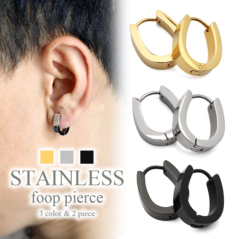 ピアス フープピアス ステンレス メンズ レディース ホースシュー 馬蹄 ゴールド シルバー ブラック ジュエリー IP 金属アレルギー対応 両耳用 2点セット