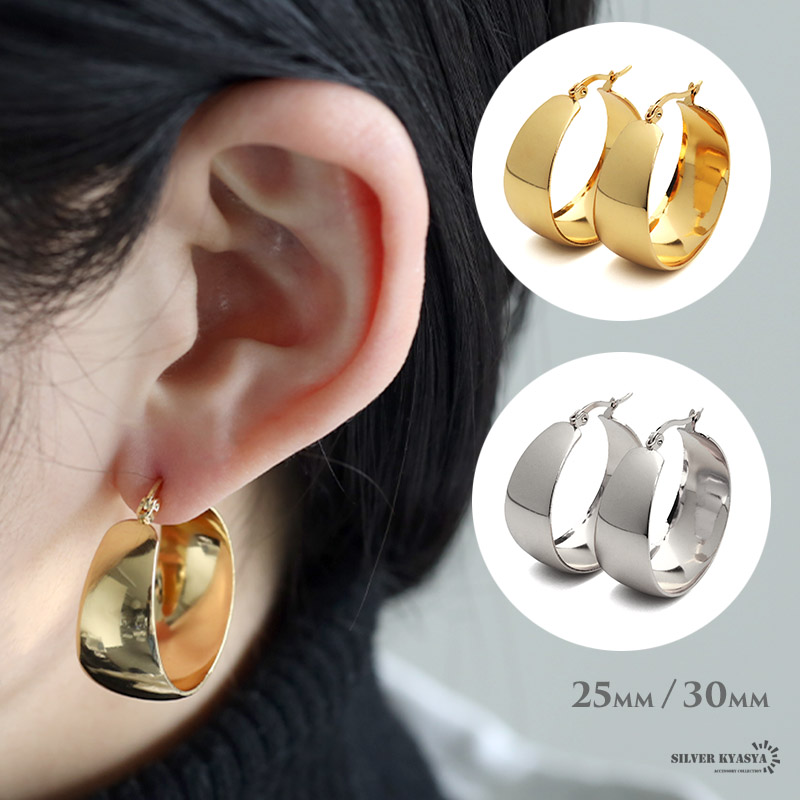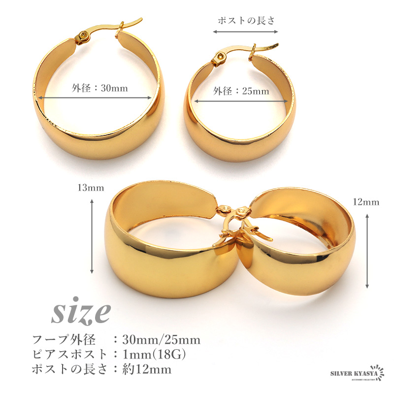 フープピアス 太め ステンレス レディース ピアス イヤリング ゴールド シルバー gold 2点セット 大ぶり 軽い 両耳用 金属アレルギー対応