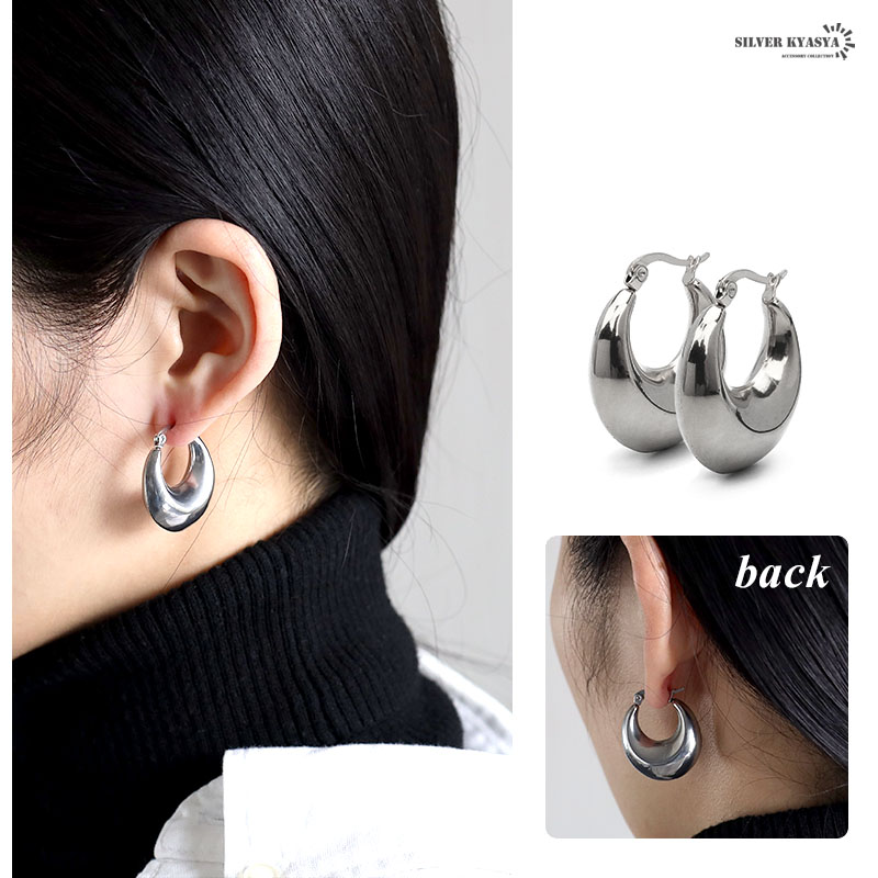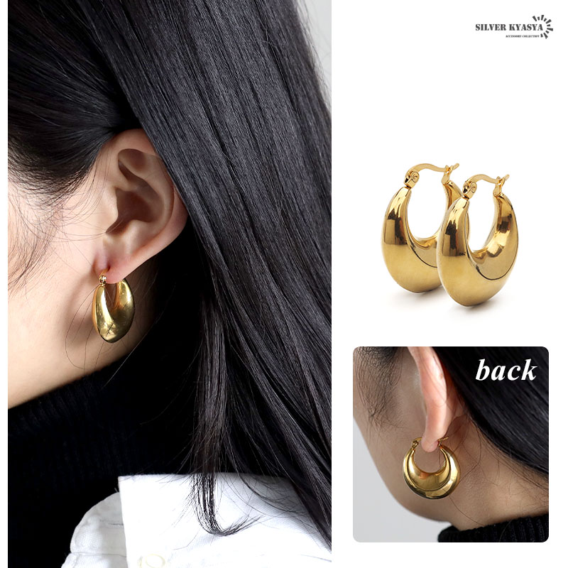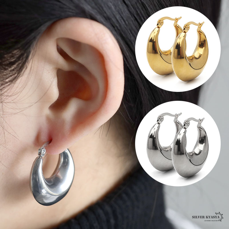 フープピアス 太め ステンレス レディース ピアス イヤリング ゴールド シルバー gold 2点セット 三日月 大ぶり 軽い 両耳用 金属アレルギー対応