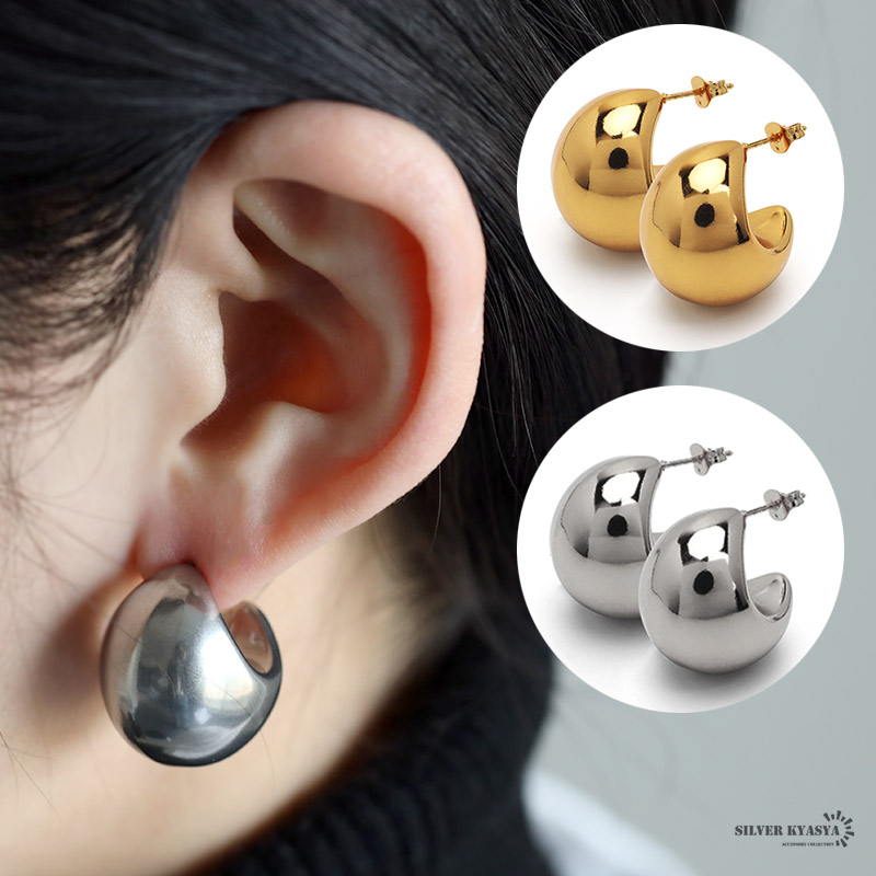 フープピアス 太め ステンレス レディース ピアス イヤリング ゴールド シルバー gold 2点セット 太幅 三日月 大ぶり 軽い 両耳用 金属アレルギー対応