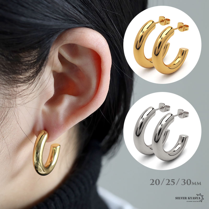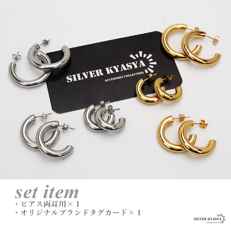 フープピアス 太め ステンレス レディース ピアス イヤリング ゴールド シルバー gold 2点セット シンプル 四角 大ぶり 軽い 両耳用 金属アレルギー対応