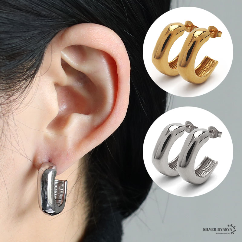 フープピアス 太め ステンレス レディース ピアス イヤリング ゴールド シルバー gold 2点セット 楕円 オーバル 大ぶり 軽い 両耳用 金属アレルギー対応