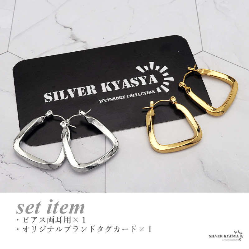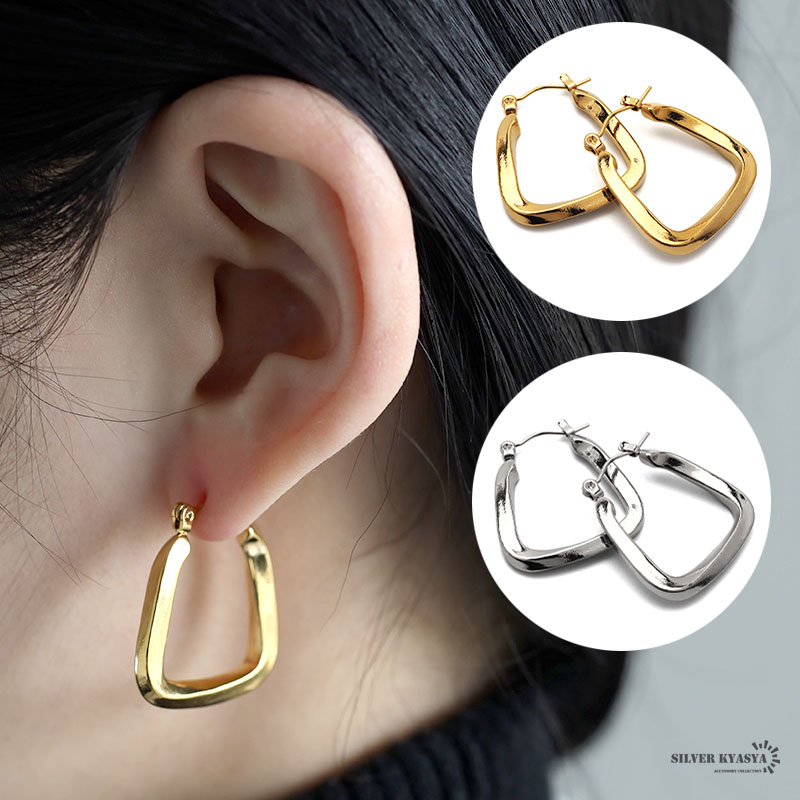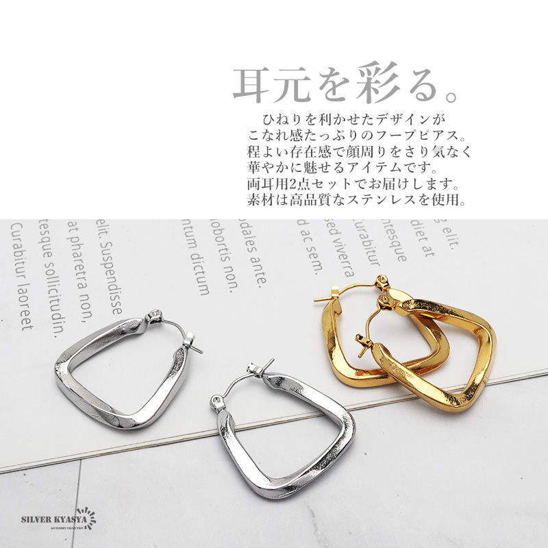 フープピアス 太め ステンレス レディース ピアス イヤリング ゴールド シルバー gold 2点セット ひねり 大ぶり 軽い 両耳用 金属アレルギー対応