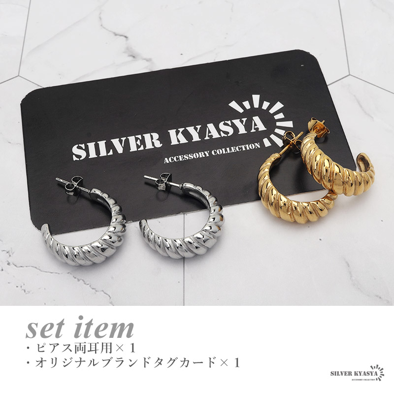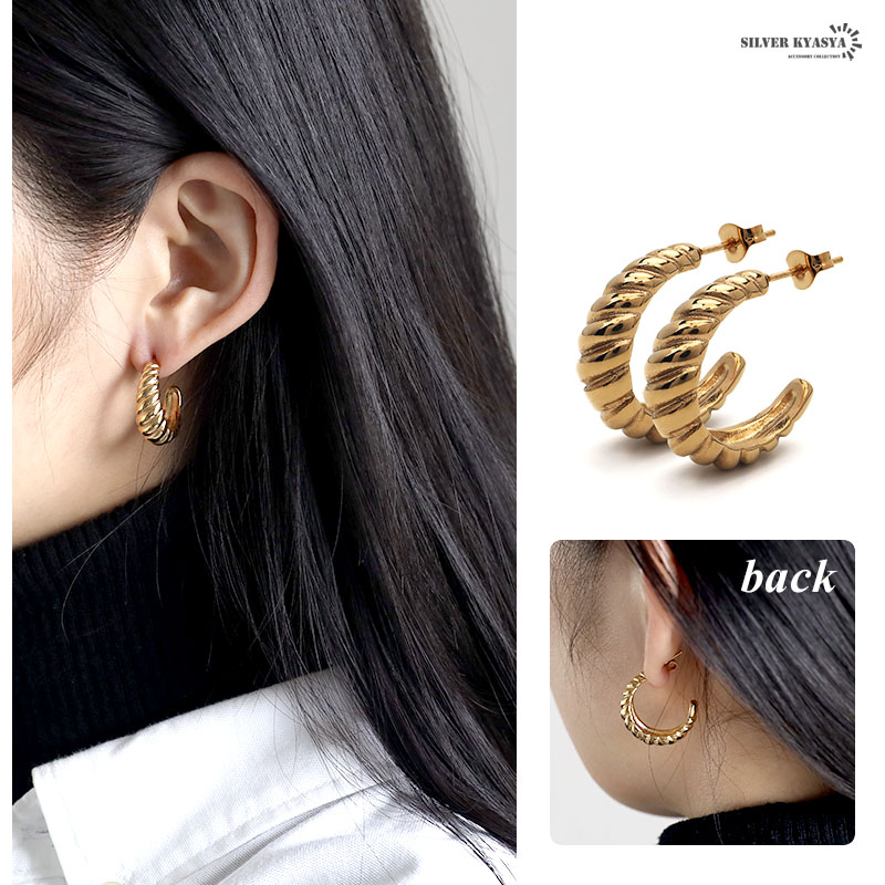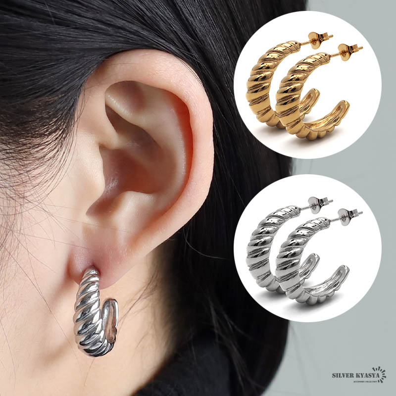 フープピアス 太め ステンレス レディース ピアス イヤリング ゴールド シルバー gold 2点セット ひねり ツイスト 大ぶり 軽い 両耳用 金属アレルギー対応