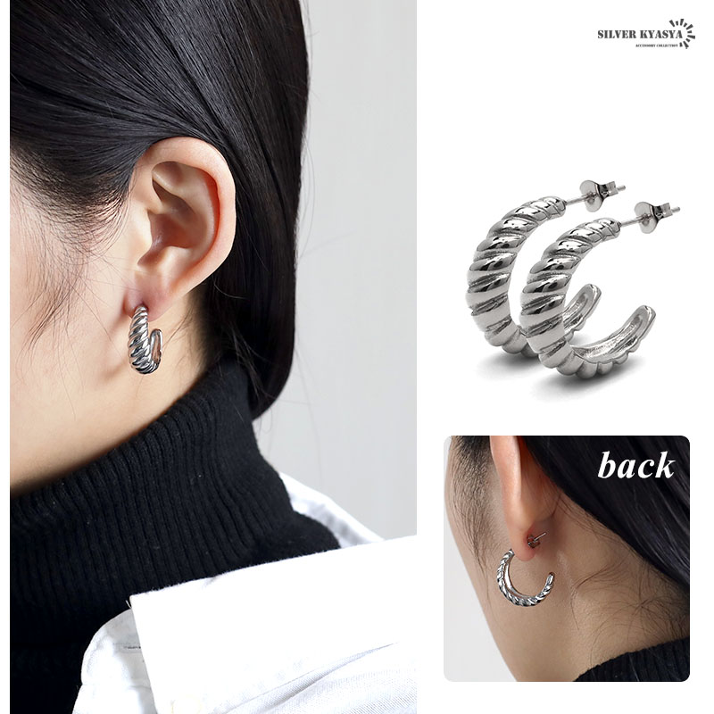 斜めにひねったツイストデザインが視線を誘うメタルフープピアス。程よい存在感で顔まわりをさり気なく華やかに魅せるアイテムです。