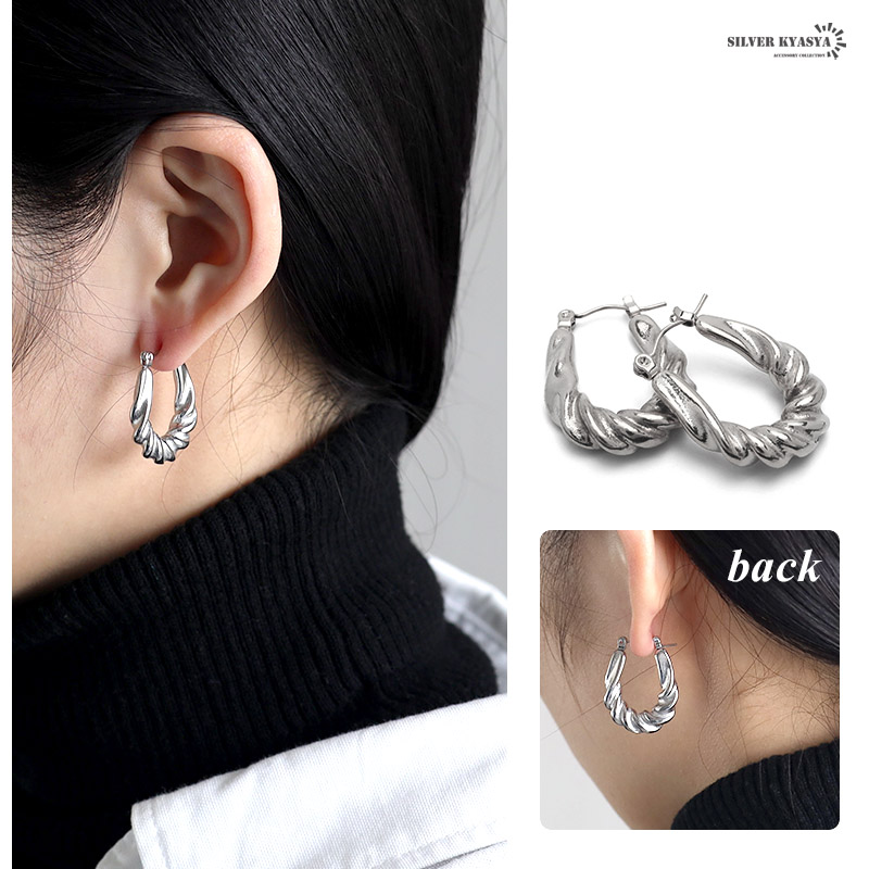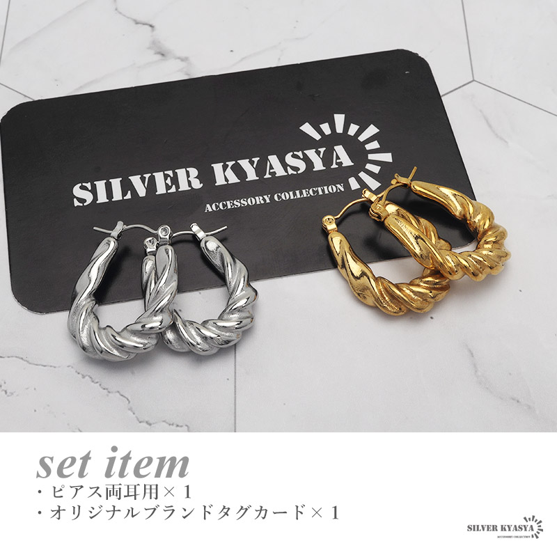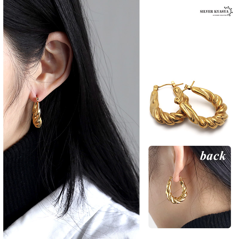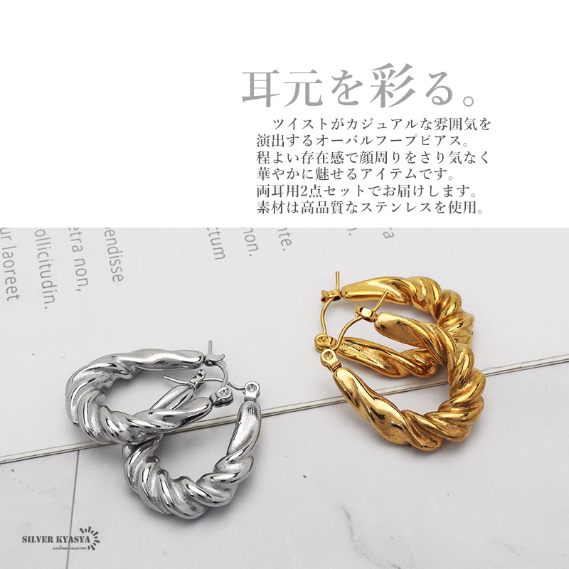 フープピアス 太め ステンレス レディース ピアス イヤリング ゴールド シルバー gold 2点セット スパイラル 螺旋 大ぶり 軽い 両耳用 金属アレルギー対応