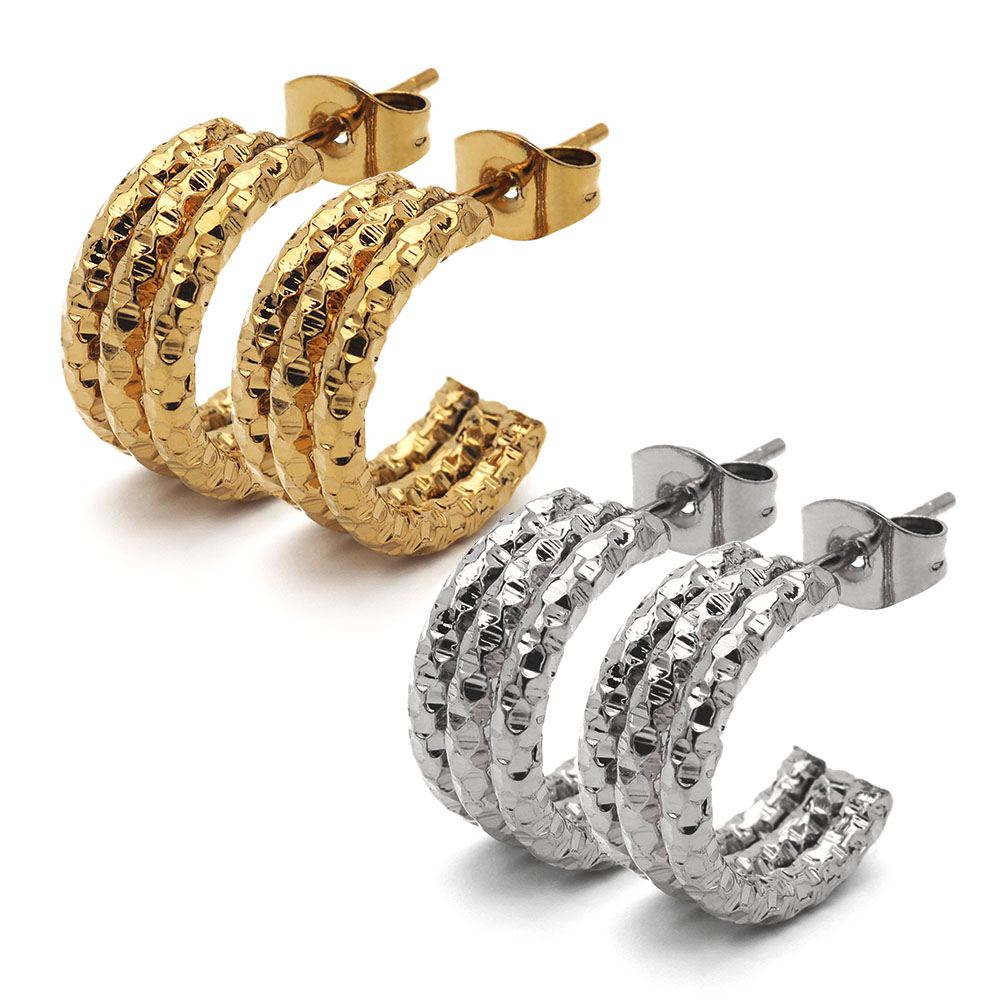 繊細なカッティングが織りなすリッチな質感が魅力のフープピアス。程よい存在感で顔まわりをさり気なく華やかに魅せるアイテムです。