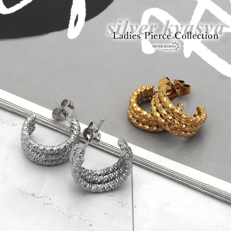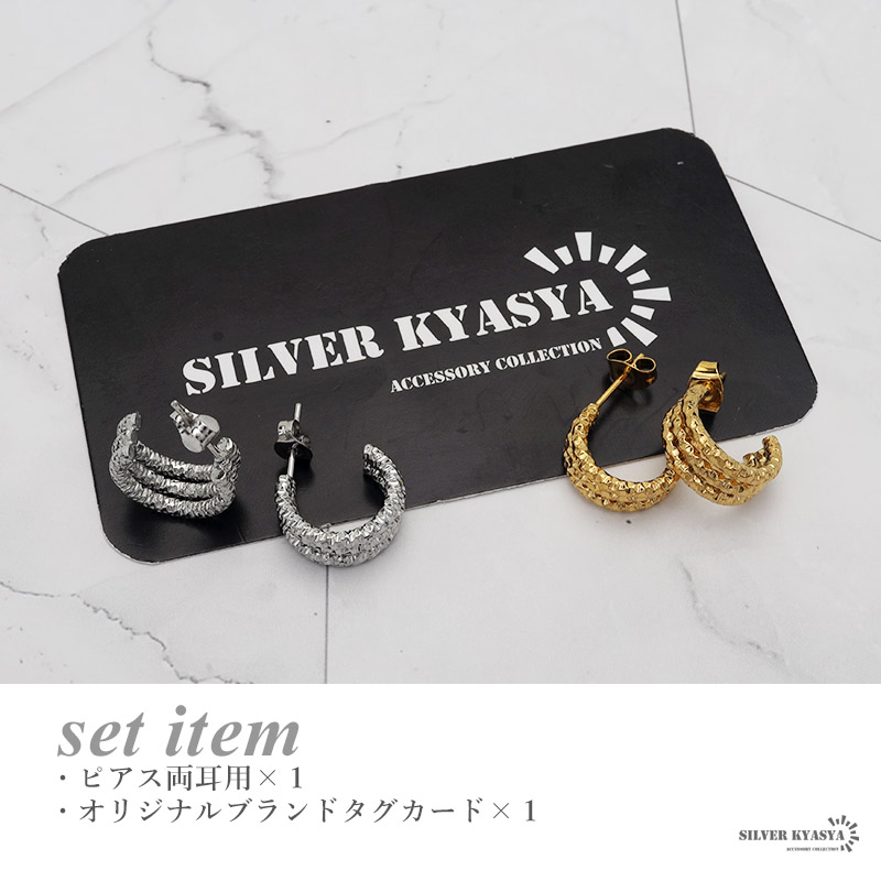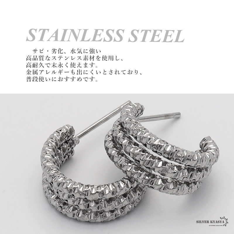 フープピアス 太め ステンレス レディース ピアス イヤリング ゴールド シルバー gold 2点セット ギャザー 大ぶり 軽い 両耳用 金属アレルギー対応