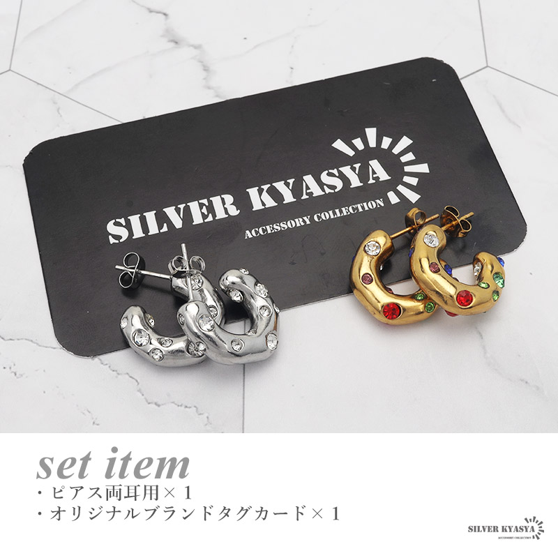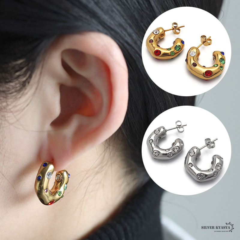 フープピアス 太め ステンレス レディース ピアス イヤリング ゴールド シルバー gold 2点セット CZ ポップ 大ぶり 軽い 両耳用 金属アレルギー対応