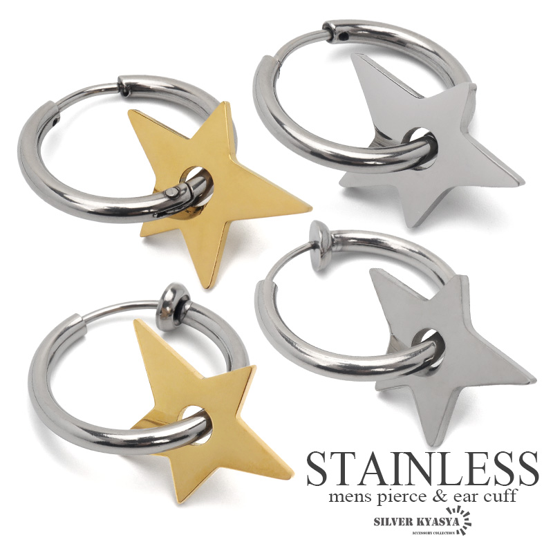スターピアス ステンレス フープピアス ゴールド シルバー メンズ ピアス フェイクピアス イヤーカフ 片耳用 金属アレルギー対応
