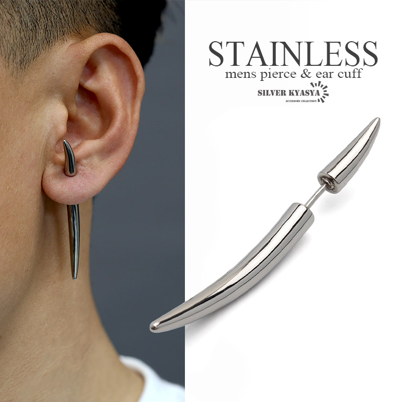 牙 コーン ピアス ステンレス メンズ モチーフピアス シルバー 象牙 シンプル 金属アレルギー対応 片耳 1点