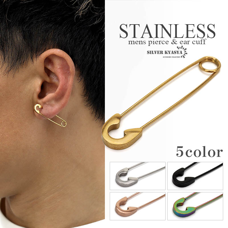 片耳 安全ピンピアス セーフティピンピアス ステンレス素材 金属アレルギーフリー ユニセックスピアス シルバー ゴールド ブラック ローズゴールド