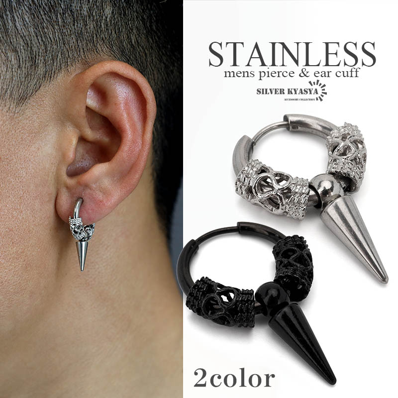 スタッズフープピアス シルバー ブラック リングピアス ステンレス ドラゴンピアス メンズ 存在感あり 韓流 片耳用