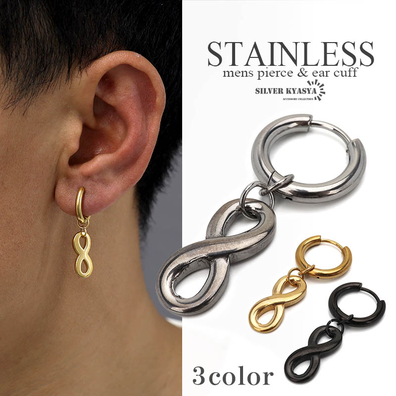 片耳 インフィニティピアス 8ピアス 無限ピアス フープ シルバー ブラック ゴールド インフィニティリング ∞ ピアス 韓流