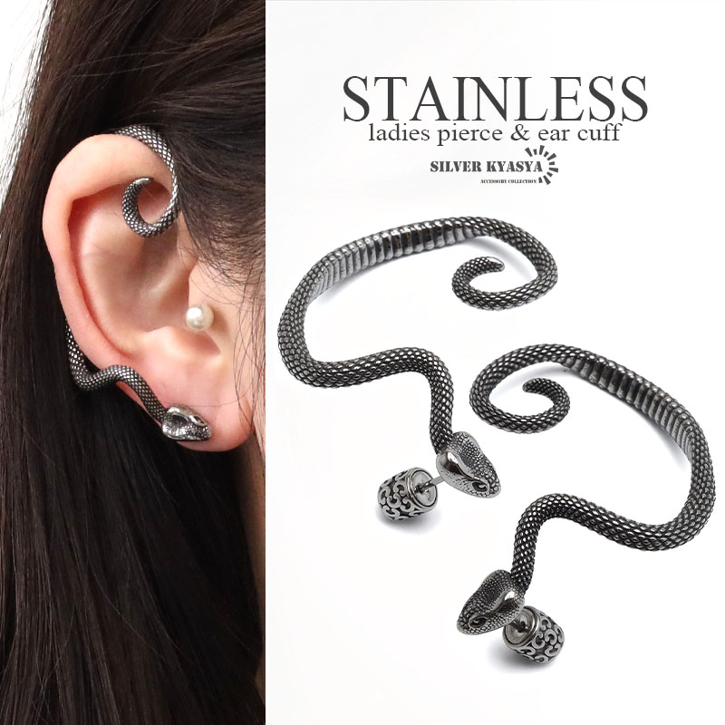 ステンレス素材 スネークピアス 蛇 いろんな角度から立体感 存在感あり 片耳 右耳用 ラージサイズ 蛇ピアス ユニセックス