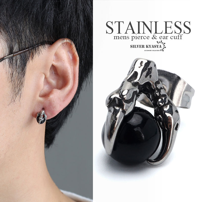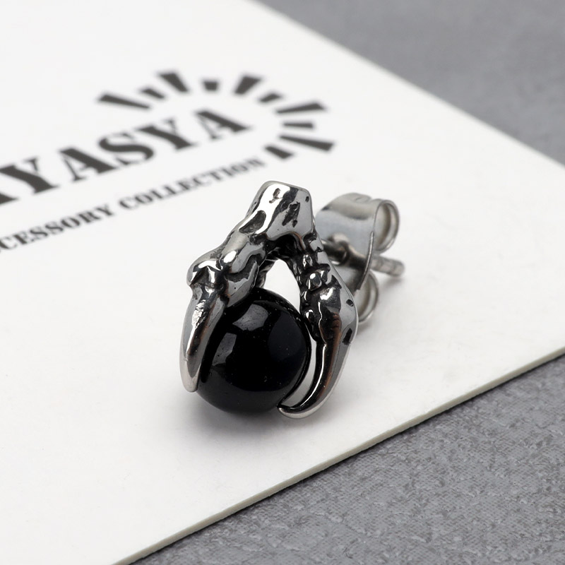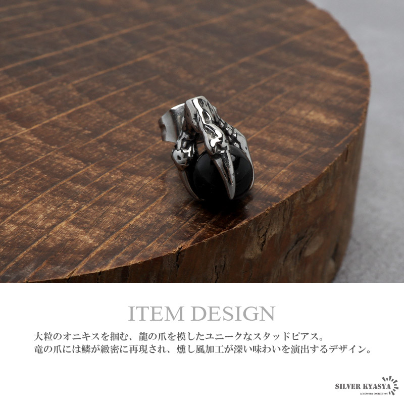 ステンレス素材 オニキスピアス シルバー 龍爪 一粒ピアス オニキス スタッドピアス 竜の爪 ドラゴン 金属アレルギーフリー 片耳