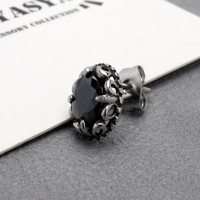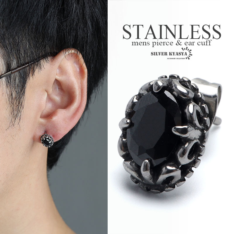 ステンレス素材 オニキスピアス シルバー 一粒ピアス オニキス オーバル スタッドピアス フレア 金属アレルギーフリー 片耳