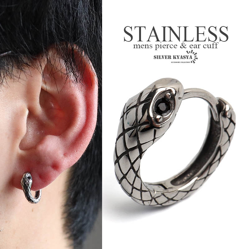 ステンレス製 スネークピアス 蛇 フープピアス シルバー キルティング ユニーク 片耳1点 プチプラ メンズ 男性 金アレ対応 爆買