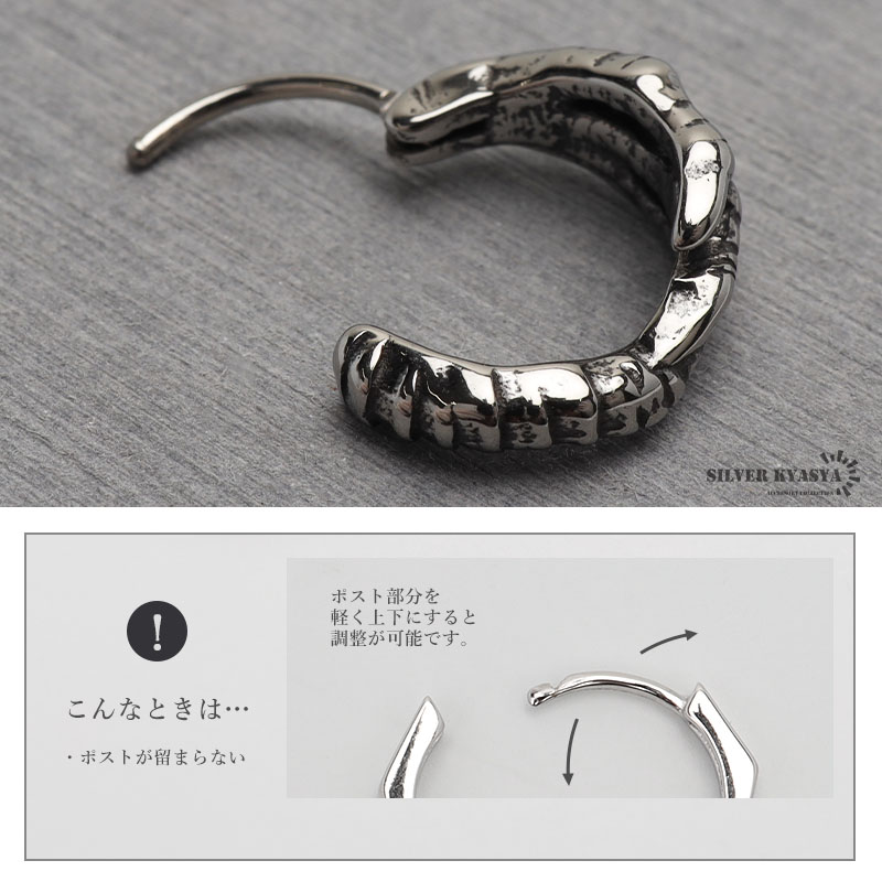 ステンレス製 龍の手 ピアス ドラゴンピアス フープピアス シルバー ユニーク 片耳1点 プチプラ メンズ 男性 金アレ対応