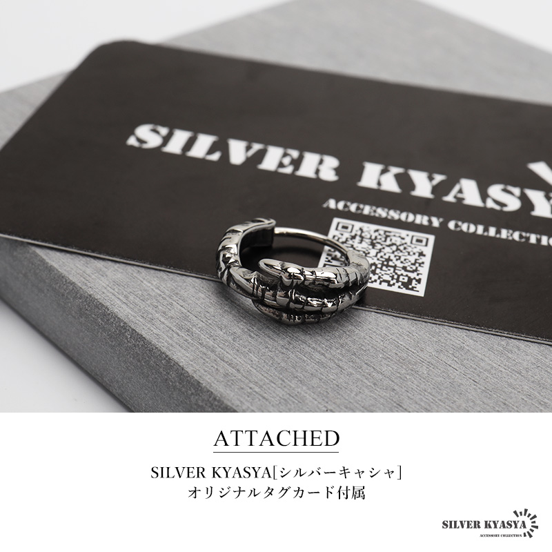 龍の手をユニークにデザインしたフープピアス。燻し風加工でより立体的でリアリティ溢れる仕上がりに。他にはないデザインで目を惹くアイテムです。