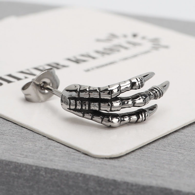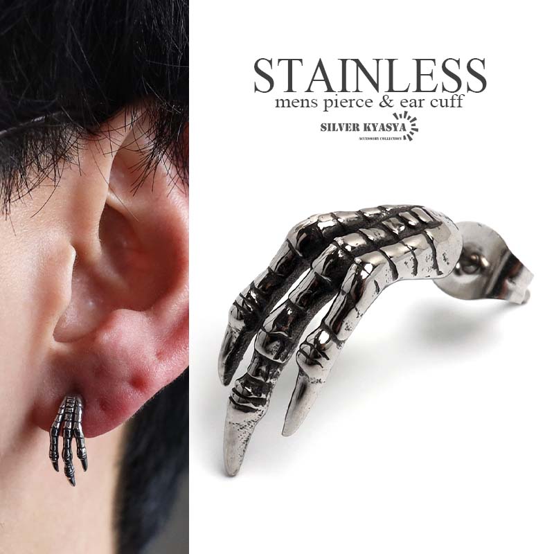 ステンレス製 龍の手 ピアス ドラゴンピアス シルバー 燻し風 片耳1点 プチプラ メンズ 金アレ対応