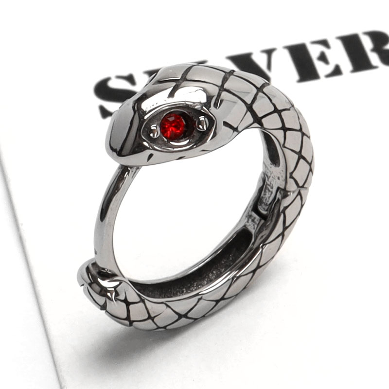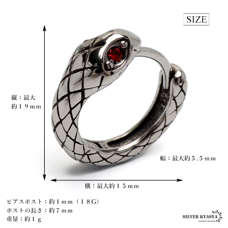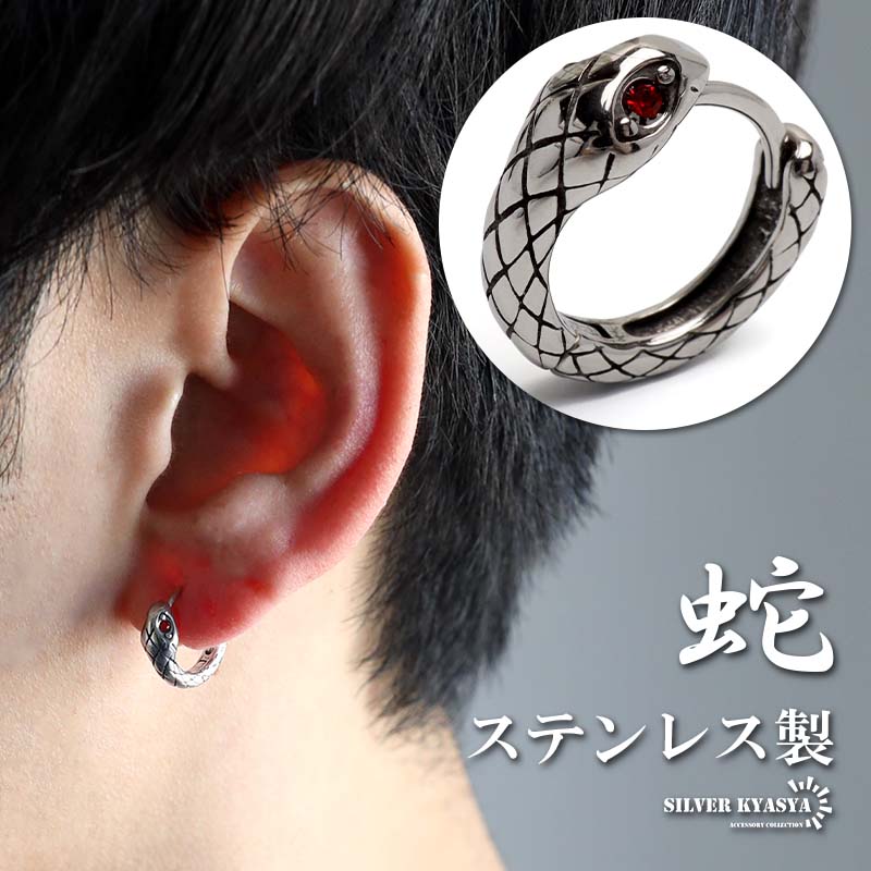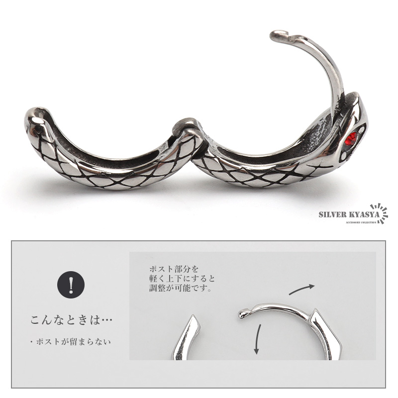 スネークピアス フープピアス 蛇ピアス ヘビ ステンレス 赤目 シルバー 片耳 金属アレルギー対応 爆買