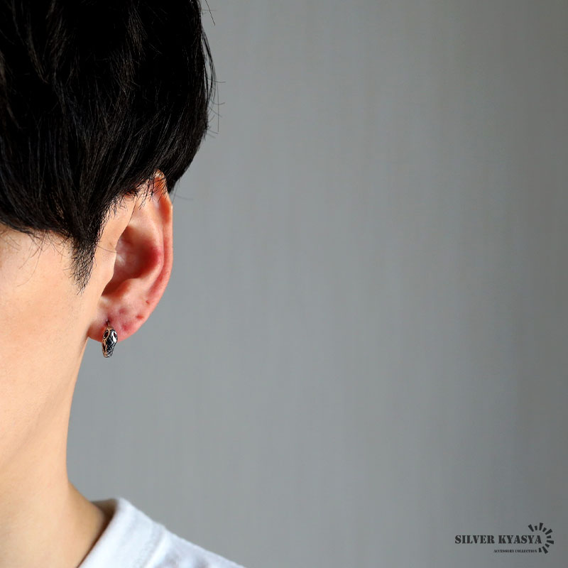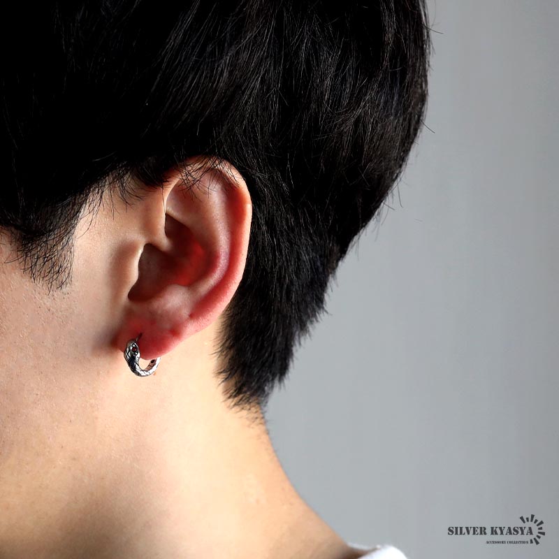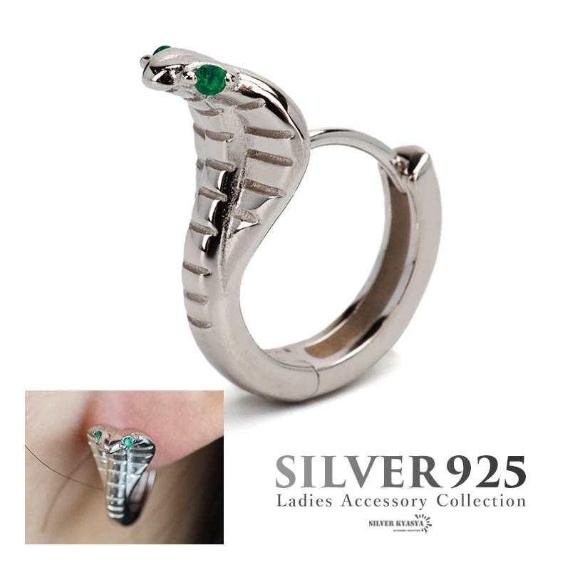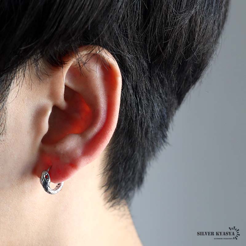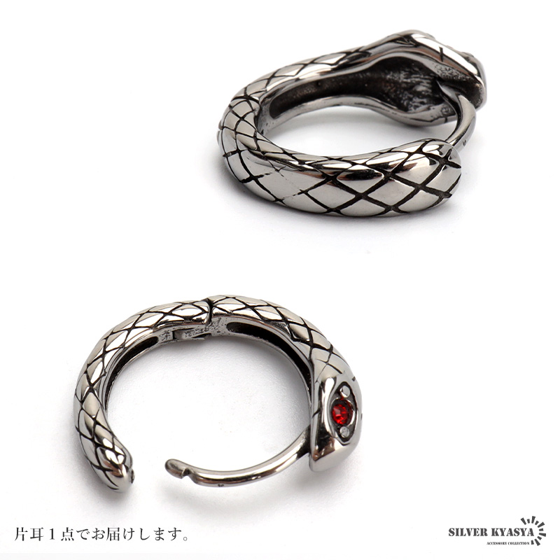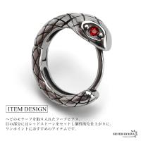 ヘビのモチーフを取り入れたフープピアス。目の部分にはレッドストーンをセットし個性的な仕上がりに。ワンポイントにおすすめのアイテムです。