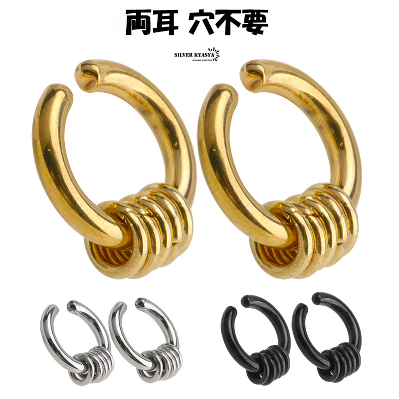 両耳 ステンレス イヤーカフ ゴールド シルバー ブラック ピアス フープ フェイクピアス メンズ ピアス リング 穴不要 簡単装着