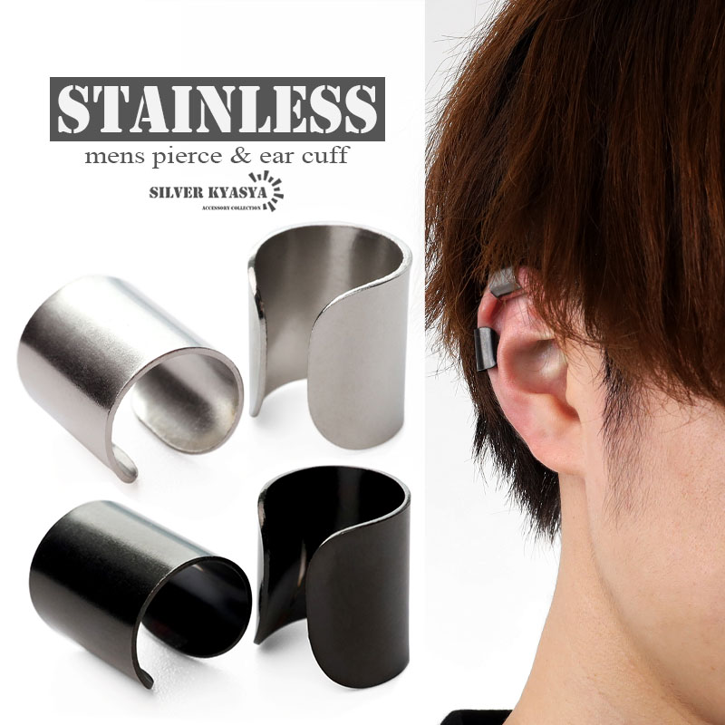 両耳用2点セット シンプルイヤーカフ ロング ステンレス イヤーカフ メンズ ブラック 男性 挟むだけ silver 耳の穴不要 金属アレルギー対応