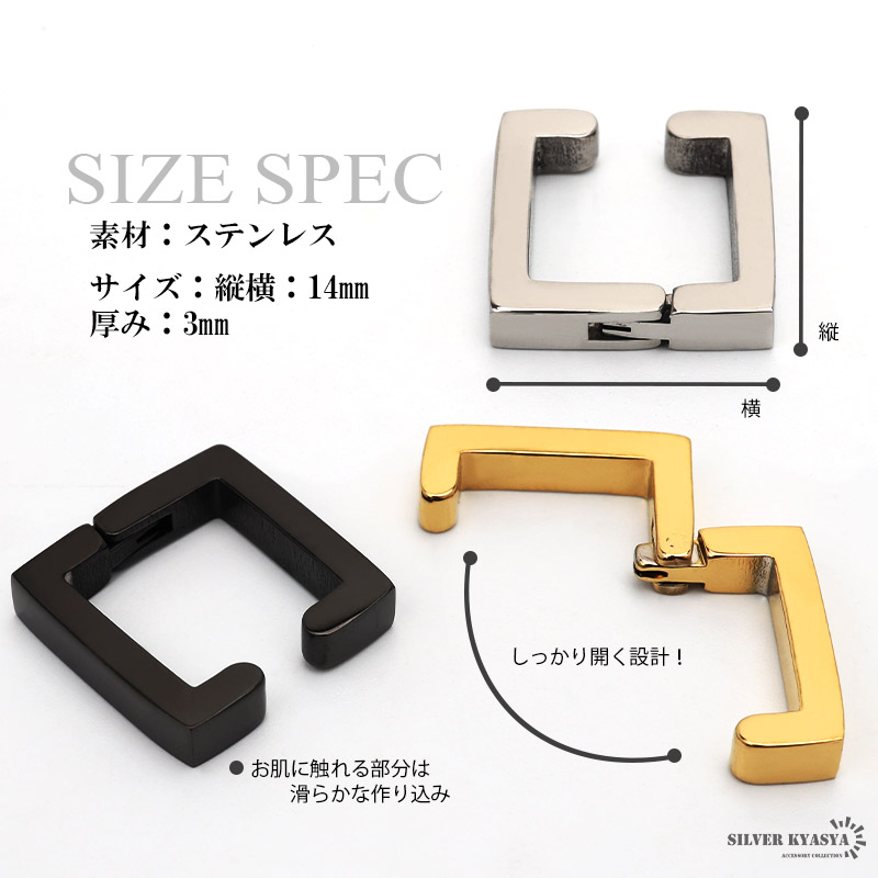 ステンレス スクエアイヤーカフ レディース メンズ 四角 耳の穴不要 ゴールド シルバー ブラック イヤカフ フェイクピアス シンプル 金属アレルギー対応 片耳用