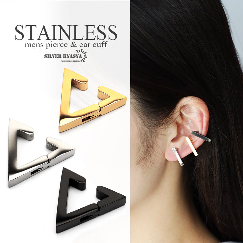 ステンレス トライアングルイヤーカフ レディース メンズ 三角 耳の穴不要 三角形 ゴールド シルバー ブラック フェイクピアス 金属アレルギー対応 片耳用